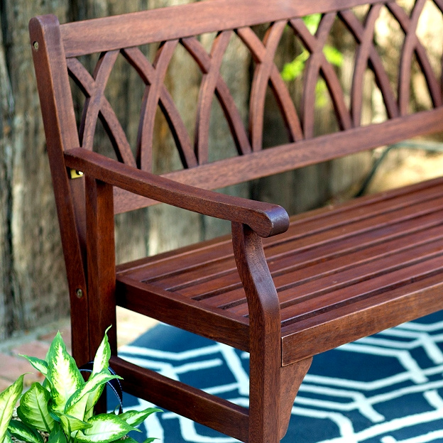 With its alluring curved X back detailing and dark brown finish, the Acacia 4 Foot Patio Garden X Back Bench is a great addition to your garden or landscape. Crafted to be long lasting and stylish has smooth slats that create the comfortable seat that accommodates two perfectly.