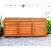 The elegant natural finish of this Patio Storage Trunk Chest fits in by the beach, pool, or backyard garden. The natural look is to emulate Teak. Its also versatile because it can be used as a bench too.