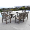 This 6 Piece 59 Inch Dining Set with Bench is made from eco-friendly FSC High Density Eucalyptus. There is not much difference between Teak and Eucalyptus when broken down to their essence. Eucalyptus is renowned for its durability, tight grain density, unaffected by weather, its resistance to damp conditions, & competence for combating insects and decay.